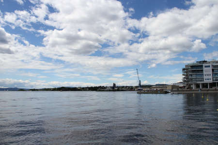 Oslo, Norway, July 27, 2013: port, Oslo's port area with vintage sailboats on a cloudy day. Editorial.
