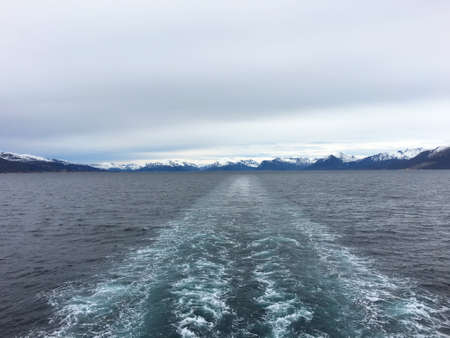 Wake after ship between Sortland and Stokmarknes in Vesteralen district in Northern Norway.