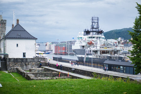 BERGEN, NORWAY - CIRCA JULY, 2017: Ship docks at the harbor