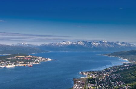 Tromso cityscape, Norway beautiful view with Lyngen Alps mountain range