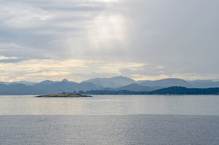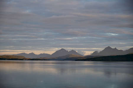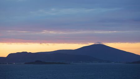 Twilight on the Norwegian coast, view of the Island Valderoey near the Norwegian town aalesund