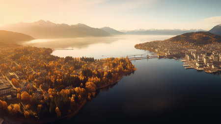 Generative AI : Aerial view of Como Lake at sunset Bellagio Lombardy Italy