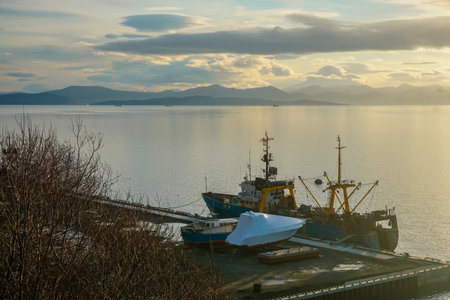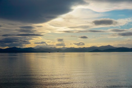 Seascape with a beautiful sunset over Avacha Bay in Kamchatka