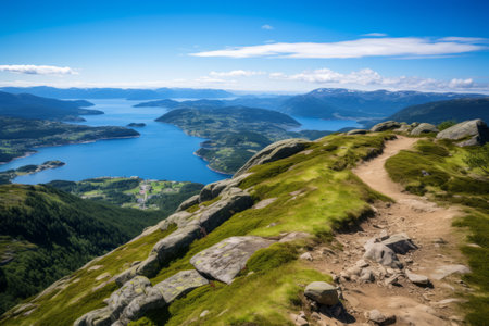 Varden viewpoint Panoramic landscapes, ocean, fjords, islands forests summer 2024 around Molde Norway Scandinavia Europe