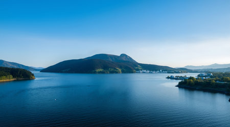 Magnificent water landscape with majestic mountains in the background in the Scandinavian town of Molde, Norway