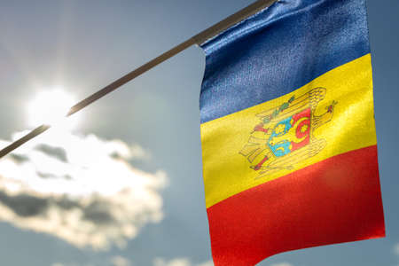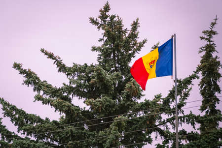 The official state flag of the Republic of Moldova. Background with copy space for text