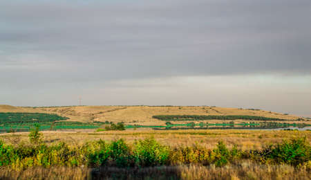 Spring evening landscape outside the city before the rain.