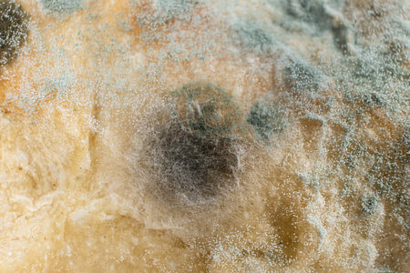 Aspergillus fumigatus mildew texture on bread bread. Organic, medical research. macro