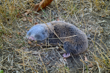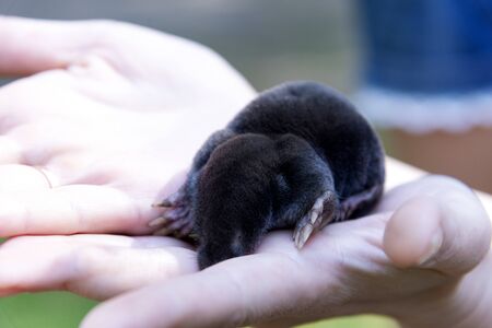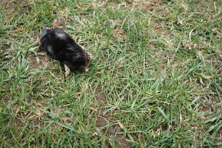 Mole animal - Talpa Europaea, causing damage as a pest in the garden with its mole hills and underground tunnels