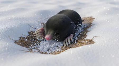 Mole in the snow. The European mole, lat. europaea