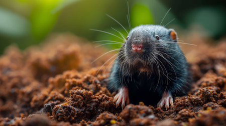 Curious Grey Mole Peeking from Its Burrow A Close-Up Portrait in Its Natural Habitat