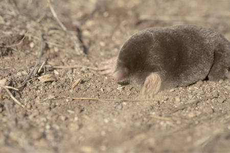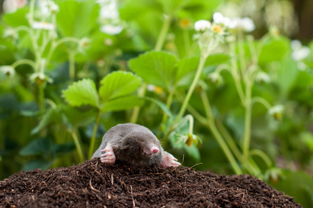 Mole in the garden. The mole is looking for food.