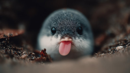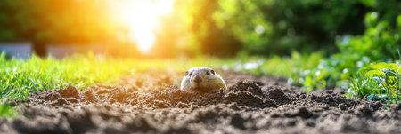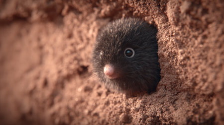 An adorable rodent peeks from its earthy burrow, whiskers dusted with soil, eyes full of curious wonder at the world above