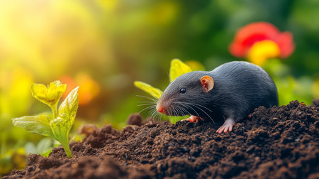 A rodent in the garden spoils the plants. High quality photo