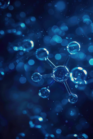 A captivating close-up view of a molecular structure featuring glowing particles against a blue background, symbolizing innovation and the wonders of science and chemistry.
