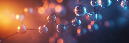 A captivating close-up view of a molecular structure featuring glowing particles against a blue background, symbolizing innovation and the wonders of science and chemistry.