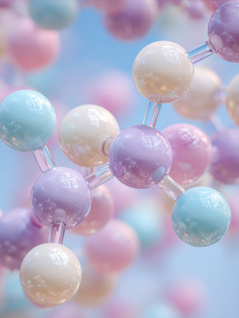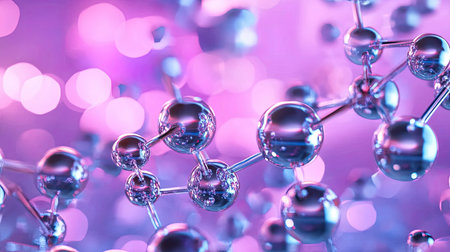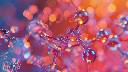 Stunning abstract representation of molecular structures featuring shiny spheres and colorful bokeh background, ideal for scientific and artistic themes.