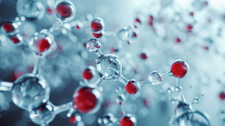 3D rendered molecular structure with transparent and red-tinted atoms, highlighting scientific elegance and complexity.