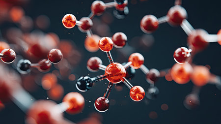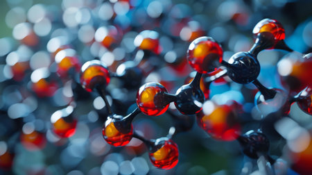 Captivating abstract representation of molecular structures showcasing red and black atoms, ideal for scientific illustrations and educational materials.