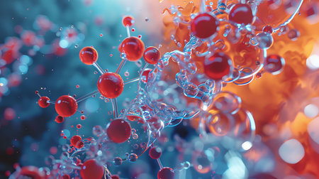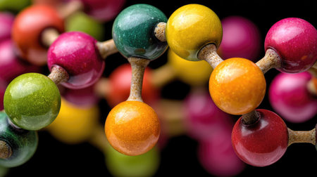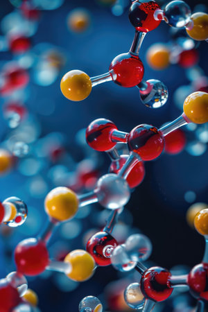 This abstract image features a detailed representation of molecular structures with interconnected atoms and colorful bonds, ideal for illustrating science and technology concepts.