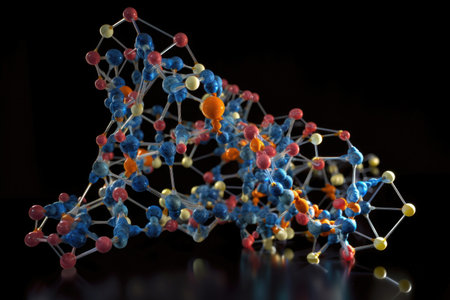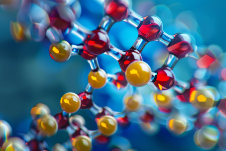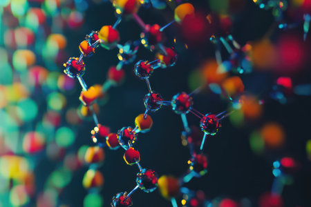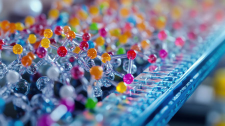 Vivid close-up of abstract molecular structures showing atom connections, scientific beauty, and the complexity of molecular science.