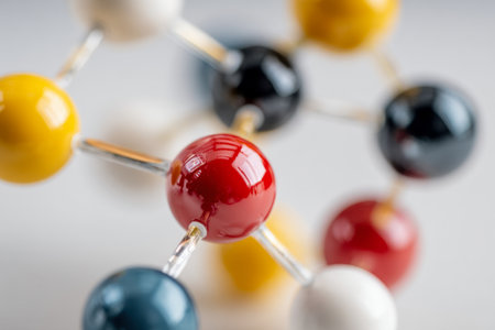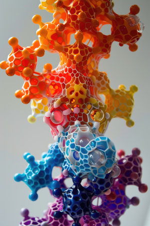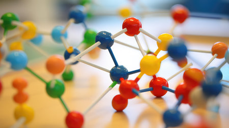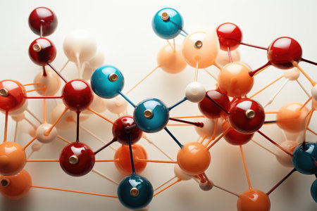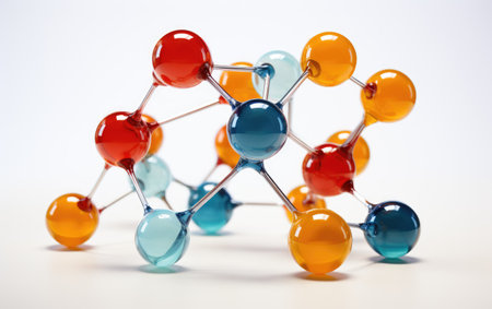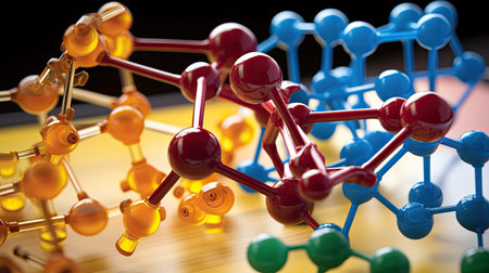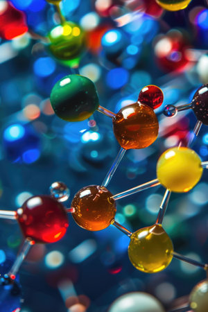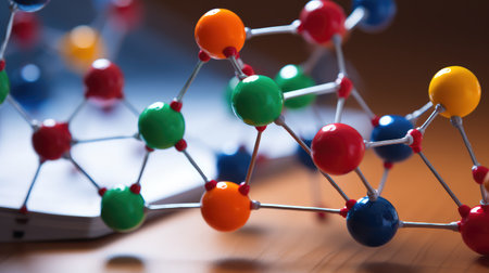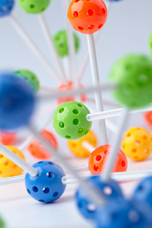 Colorful molecular structure model illustrating the bonding between atoms