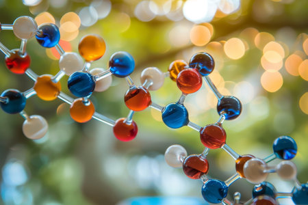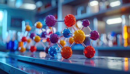 A vibrant molecular structure model showcasing colorful spheres and bonds, set against a softly lit background, representing the beauty of science.
