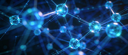 Vibrant Molecular Web: An Abstract Spheres Network on Dark Canvas