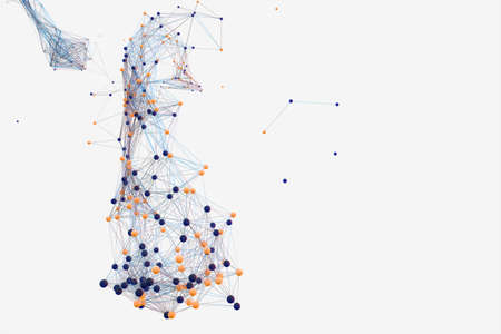 Network connection structure. Abstract background with moving dots and lines. Futuristic illustration. Digital technology design. 3d rendering.