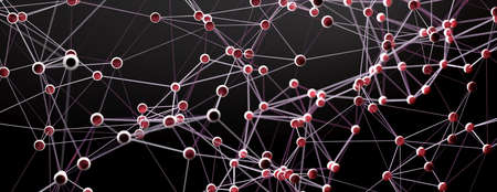 Abstract science molecular structure background, red spheres network on dark background. 3d illustration