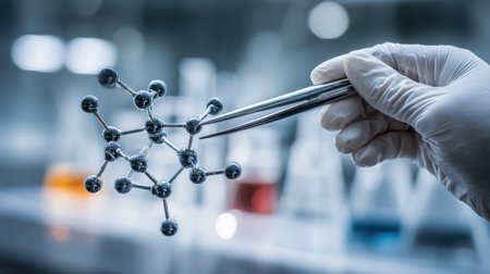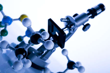 Laboratory equipment and molecular model in a science lab during a research experiment