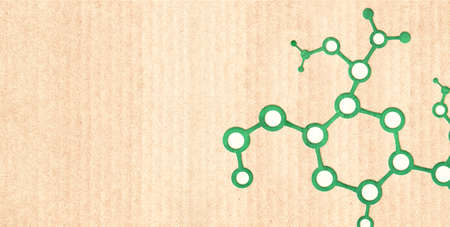 Molecular structure in paper cut style. Horizontal banner with eco paper texture. Paper cardboard background. Recycled carton material. Copy space for text. Mock up template