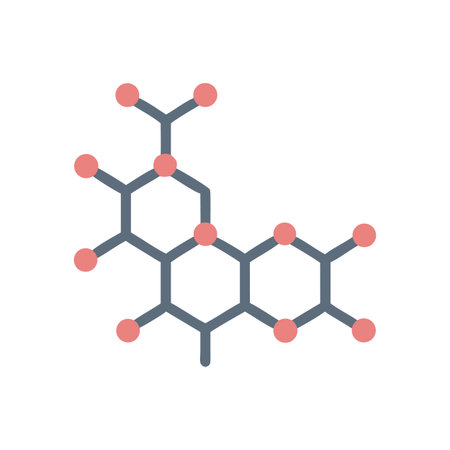 Flat illustration of a molecule with grey lines and pink circles on black background