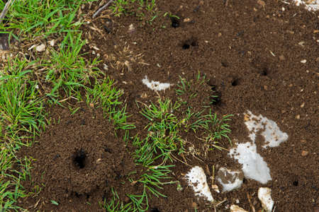 Ants nest in the soil. Selective focus. nature.