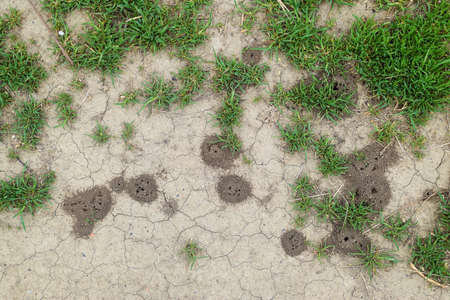 Several Mole Holes Damage in Lawn Green Grass