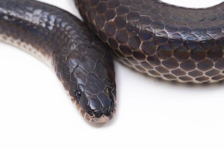 Xenopeltis unicolor. Common names: sunbeam snake is a non-venomous sunbeam snake species found in Southeast Asia and some regions of Indonesia. isolated on white background