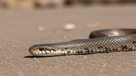 Close-up of a black whip snake (Xenochrophis calyptratus) on the sand
