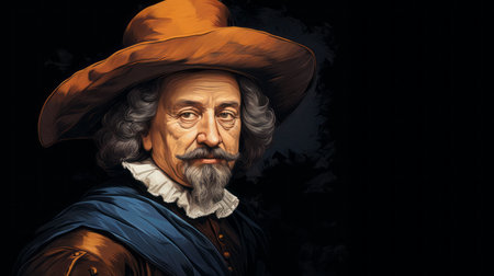 a portrait of a man in a hat, showcasing a realistic and hyper-detailed rendering. this iconic rock and roll imagery captures the essence of the subject, reminiscent of botticelli-esque figures. the close-up shot highlights the hyperrealistic precision, while also evoking a sense of child-like innocence. the trace monotone adds depth and intensity to the overall composition. ai generated