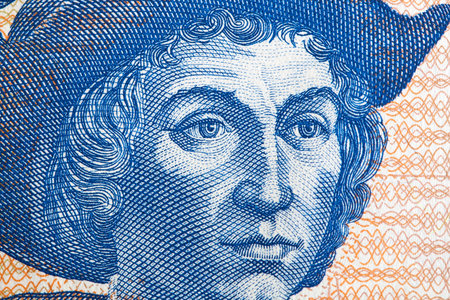Christopher Columbus a closeup portrait from old Salvadoran money - Colones