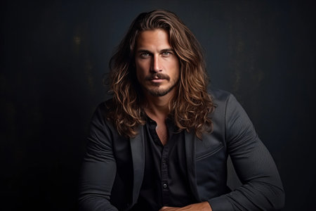 portrait of man with long hair on grey