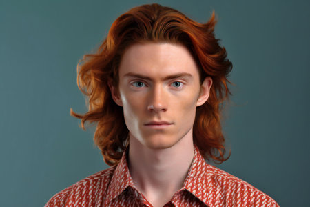 Portrait of a handsome young man with red hair on blue background