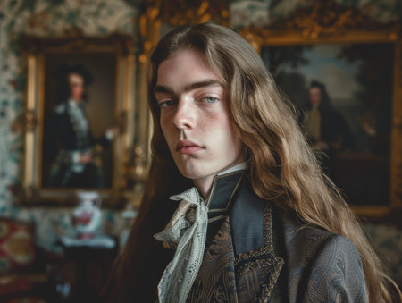 Handsome rococo king. Romantic portrait traditional king antique. Generate Ai