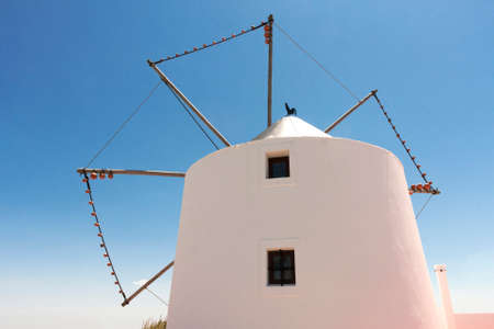 White windmill in Oia, Santorini island, Greece