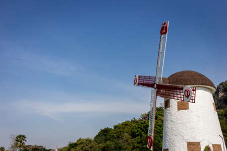 Windmill in countryside and blue sky