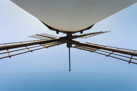 forefront of the blades of a traditional windmill in Campo de Criptana, Ciudad Real, Castilla La Mancha, Spain