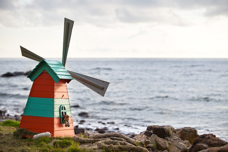 Red windmill in the coast of Pico island, Azores