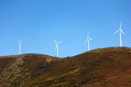 Eolic wind generators on top of hills in Portugal.