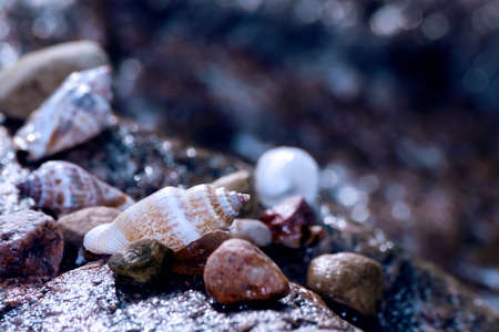 Seashells on the beach, close-up, selective focus