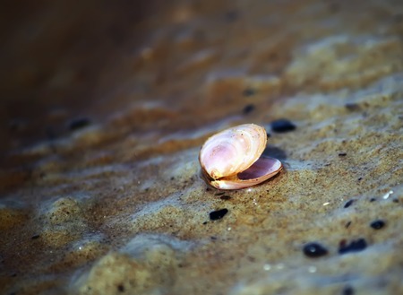 Beautiful seashell on the beach at sunset. Shallow DOF