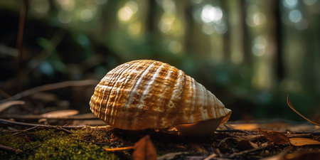 Beautiful snail shell in the forest. Shallow depth of field.